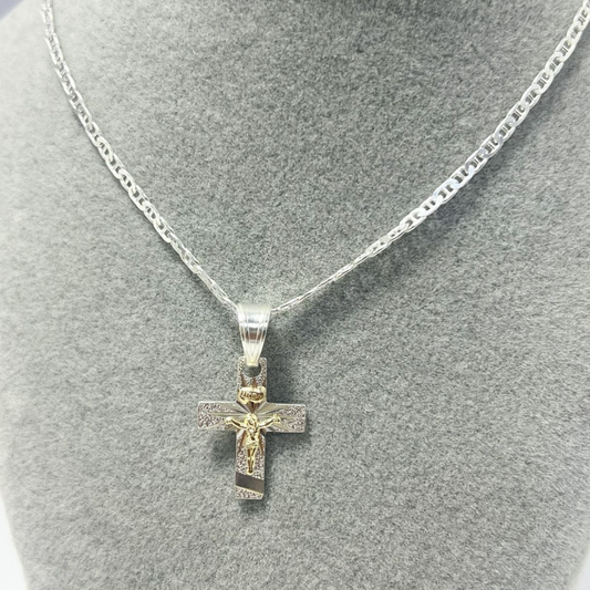 CADENA EN PLATA CON DIJE DE CRUZ BICOLOR
