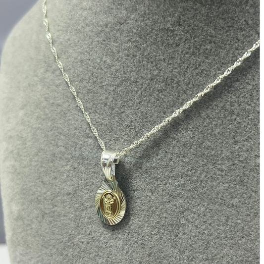 CADENA EN PLATA CON DIJE BICOLOR DE LA VIRGEN MARIA AUXILIADORA