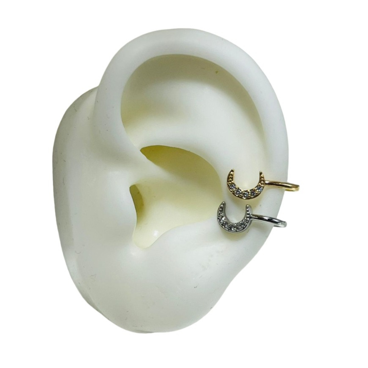 Dale un giro moderno a tu look con nuestros ear cuffs en Cover Gold con baño de Rodio. Diseñados para resaltar sin necesidad de perforaciones, su acabado en rodio garantiza un brillo duradero y resistente. Ideales para crear combinaciones únicas o llevar solos para un toque de elegancia.  MEDIDA: 10MM.