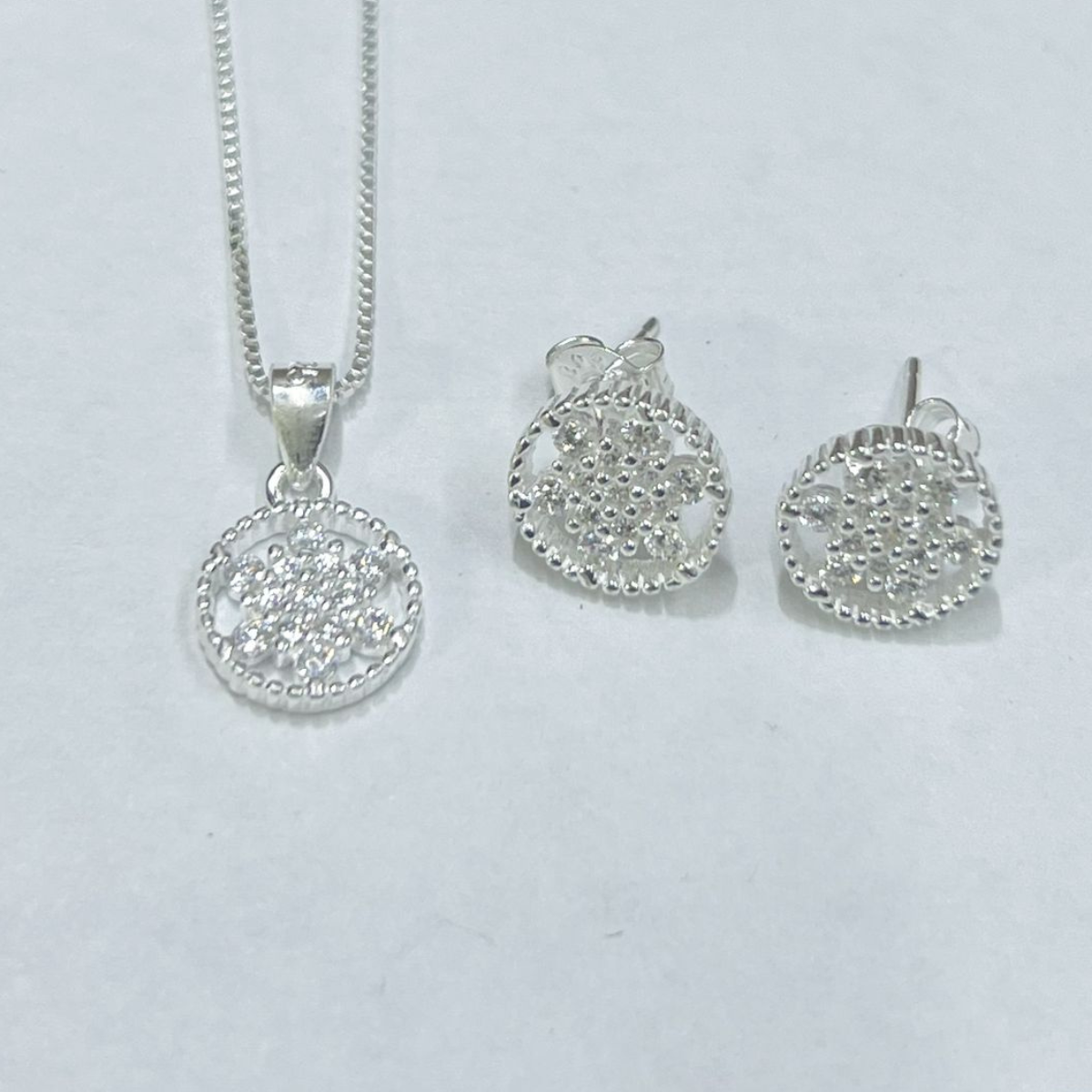 Descubre la elegancia y el encanto atemporal con nuestro exclusivo juego de plata, que incluye un delicado dije y unos atractivos aretes. Este conjunto está meticulosamente diseñado para resaltar la belleza natural de quien lo lleva, combinando artesanía de alta calidad con un estilo refinado y moderno.