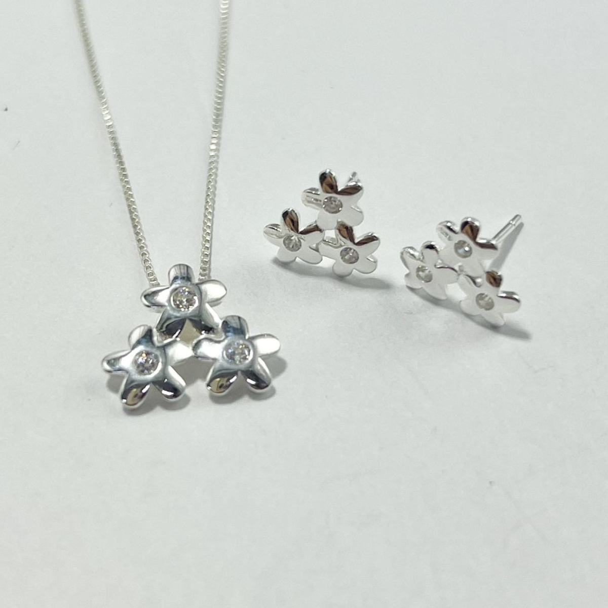 Descubre la elegancia y el encanto atemporal con nuestro exclusivo juego de plata, que incluye un delicado dije y unos sofisticados aretes. Este conjunto está meticulosamente diseñado para resaltar la belleza natural de quien lo lleva, combinando artesanía de alta calidad con un estilo refinado y moderno.