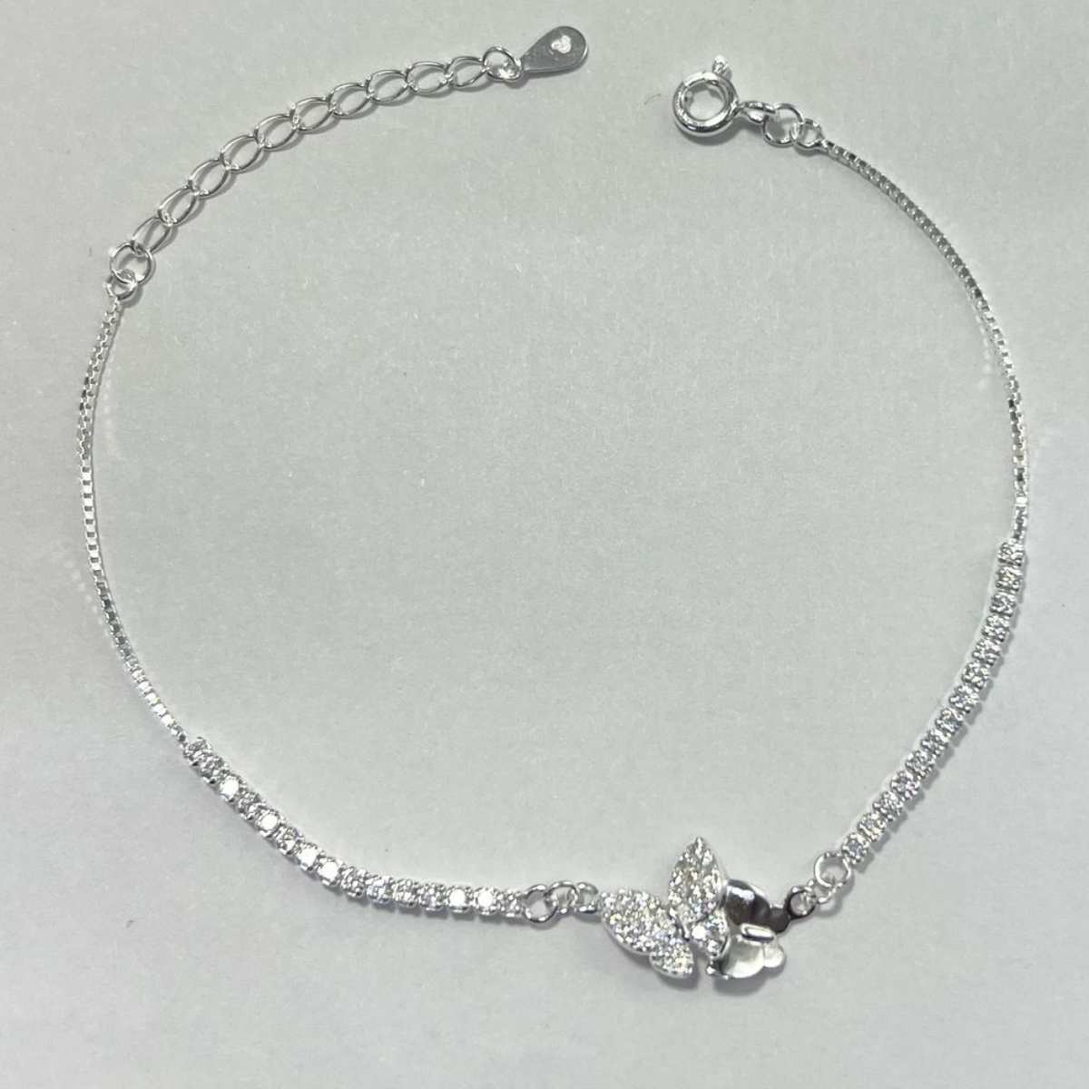 PULSERA CON CIRCONES DIJE DE MARIPOSA PLATA LEY 925