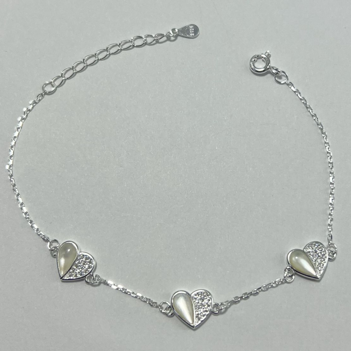 PULSERA DE CORAZONES CON MICRO CIRCONES EN PLATA LEY 925
