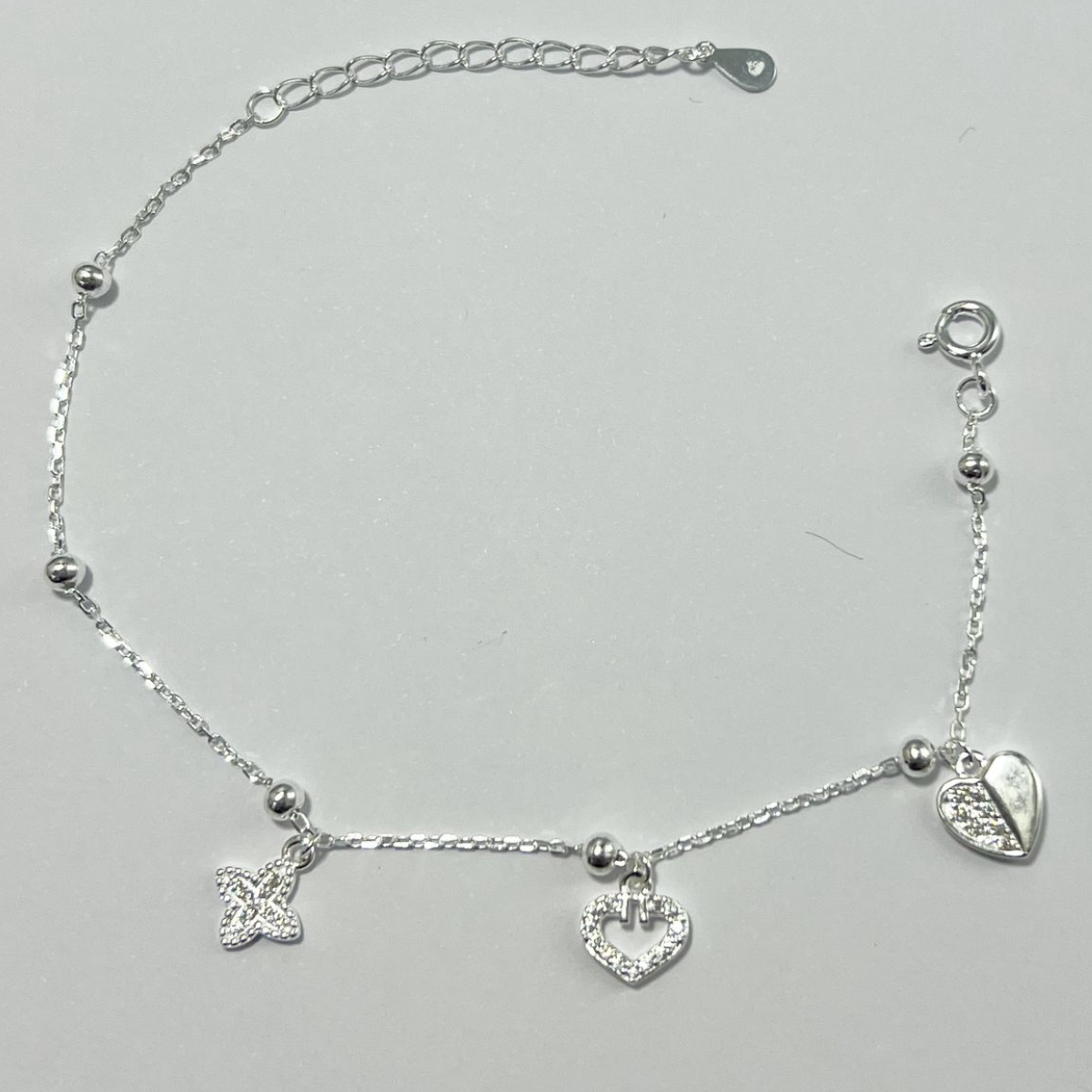 PULSERA EN PLATA CON DIJES DE CORAZÓN Y MARIPOSAS