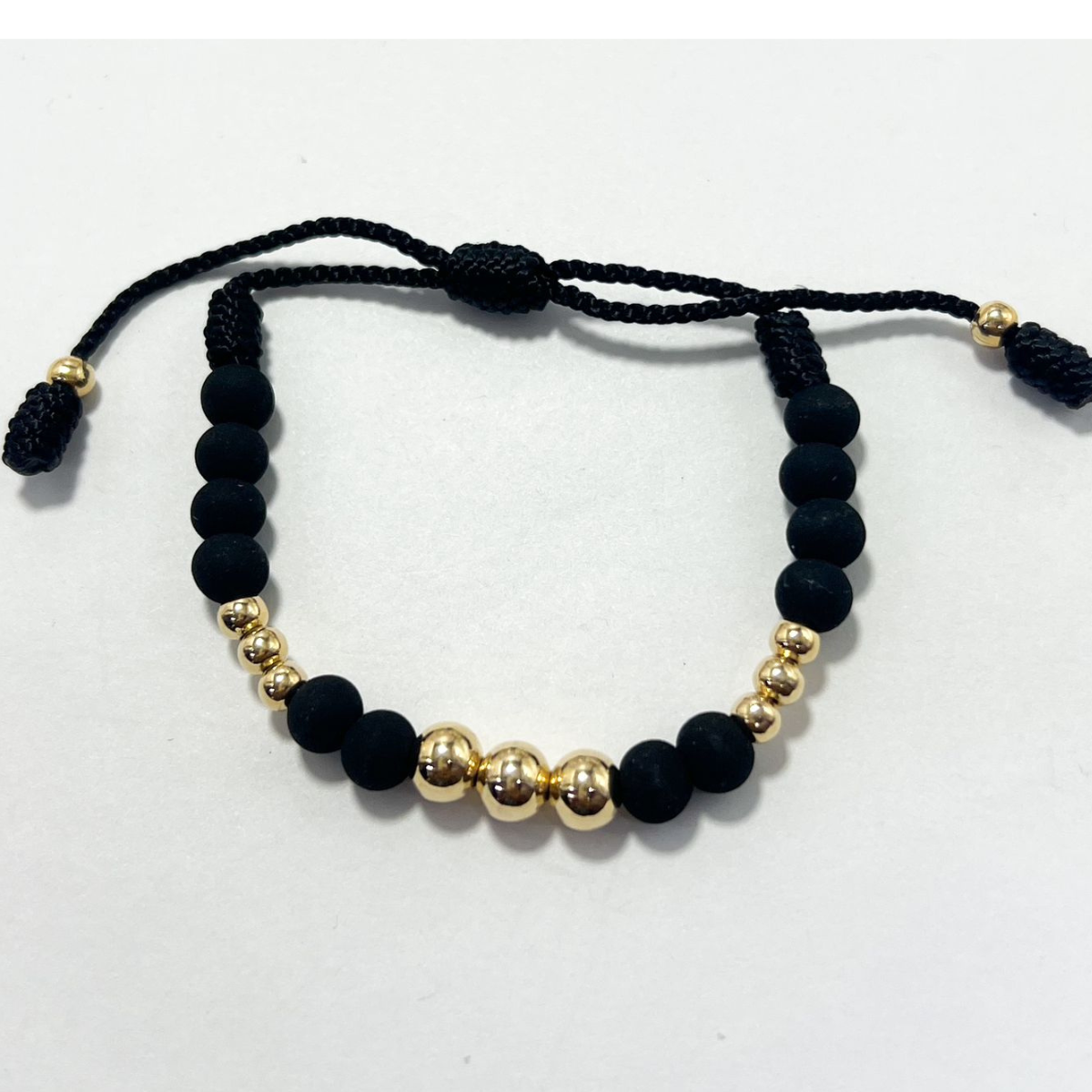 PULSERA TEJIDA ORO LAMINADO 18K BALIN 4 Y 6 MM