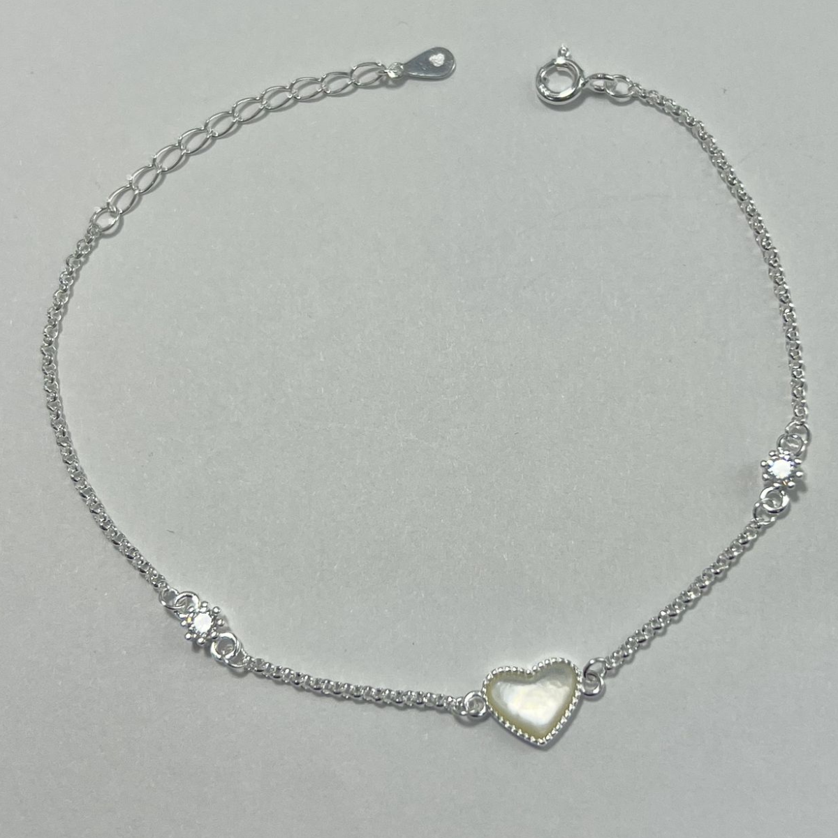 TOBILLERA DIJE CORAZÓN CON CIRCONES PLATA LEY 925