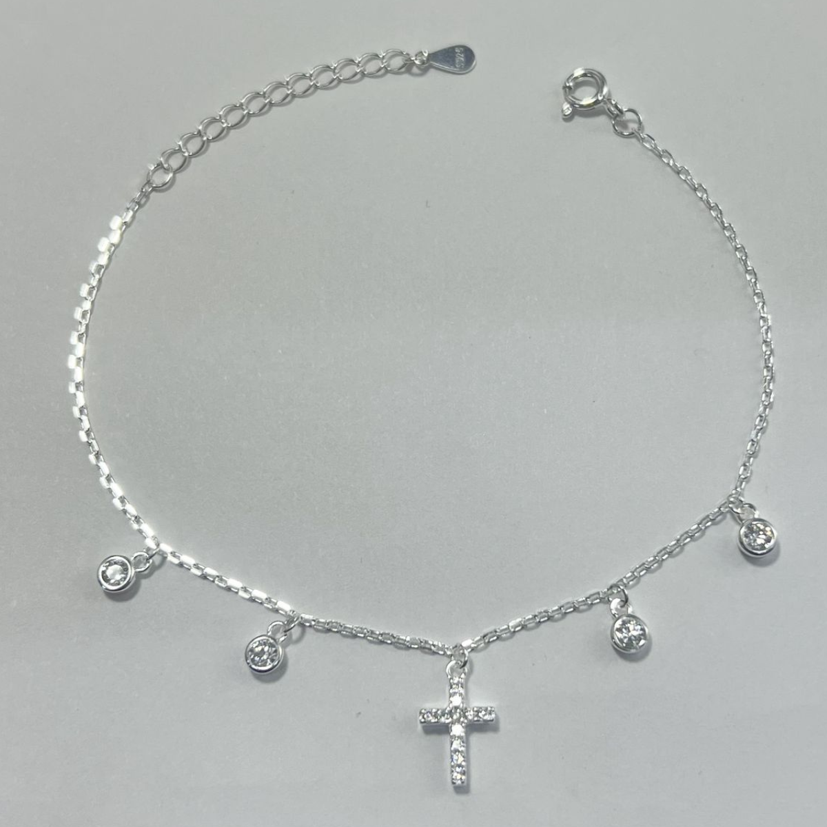 TOBILLERA EN PLATA CON DIJE DE CRUZ CON MICRO CIRCONES