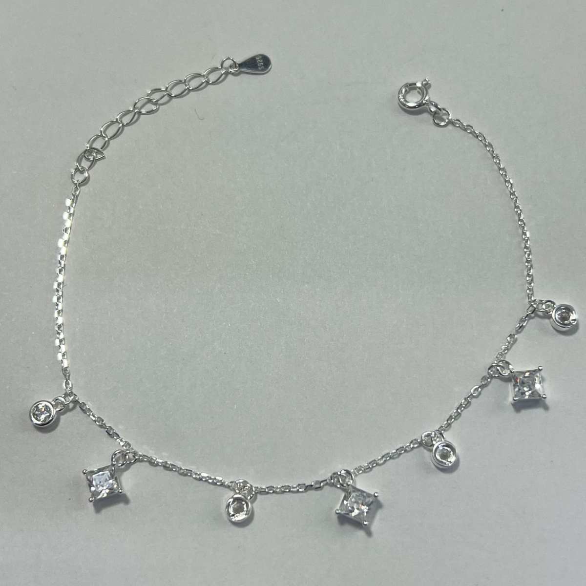 TOBILLERA EN PLATA CON DIJES DE CIRCONES