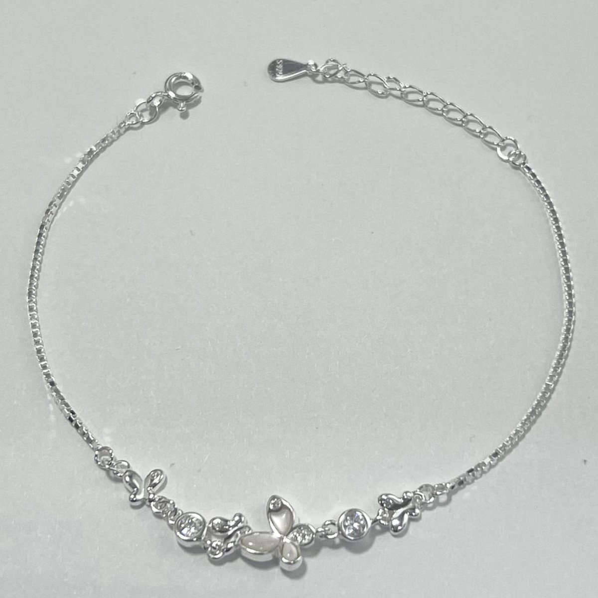 TOBILLERA EN PLATA CON MARIPOSAS Y CIRCONES